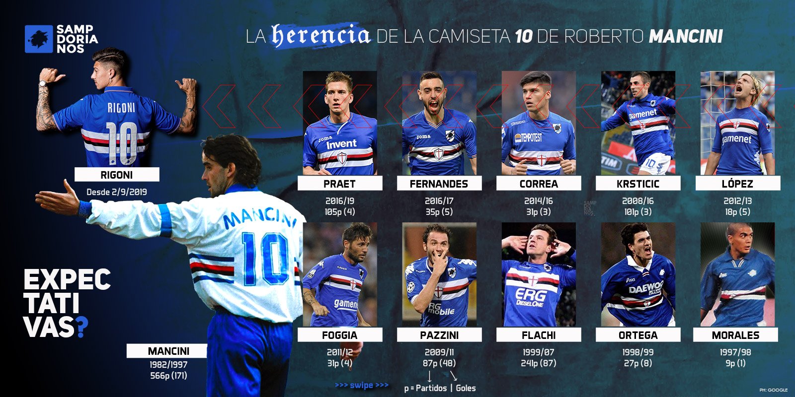 Ahora Emiliano Rigoni llegó y tomó la "10" que había quedado vacante con la salida de Dennis Praet El dato curioso es que de los 11 jugadores que vistieron esa camiseta post Mancini 5 han sido argentinos, demostrando esa relación histórica entre el club genovés y los talentos de la tierra del tango, el mate y el Obelisco.